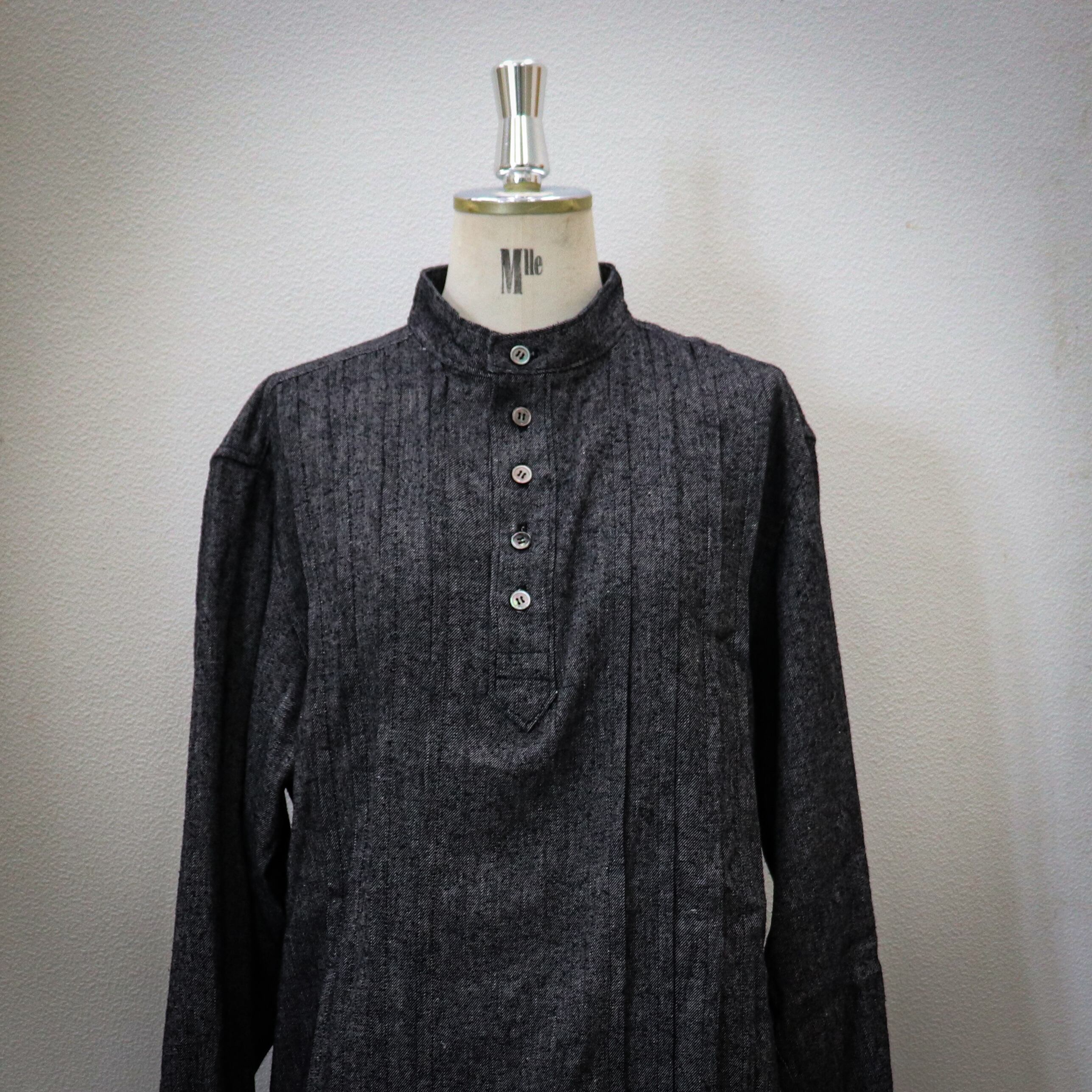 ネップ入りリネンシルクの生地を使用しており、ピンタックとも相まって上品でシャープですが、どこか粗野でナチュラルな雰囲気を感じられます。